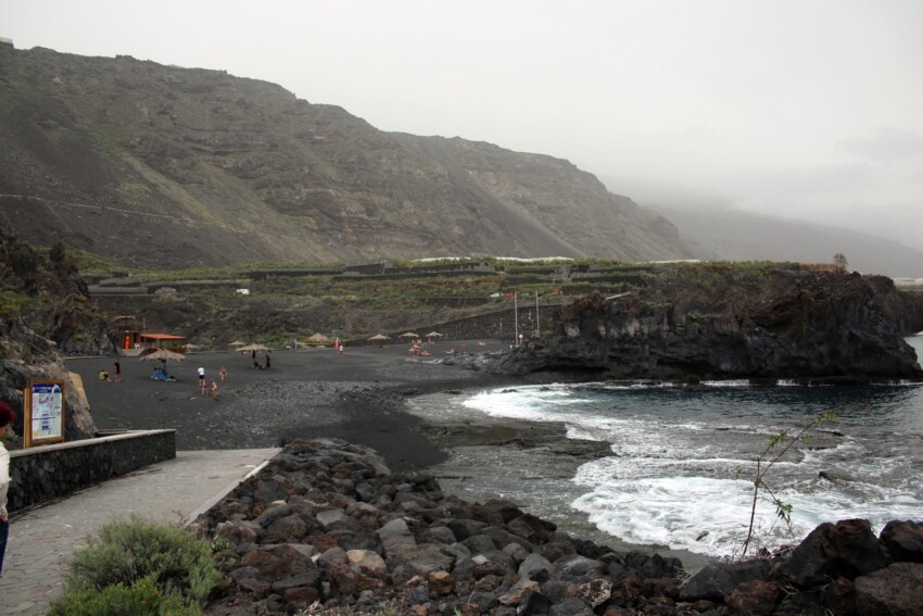 This bay of fine black volcanic sand, 250 metres long and 80 metres wide, is split in half by the Muellito, a large rock protruding into the sea and used as a diving board or base for fishermen.