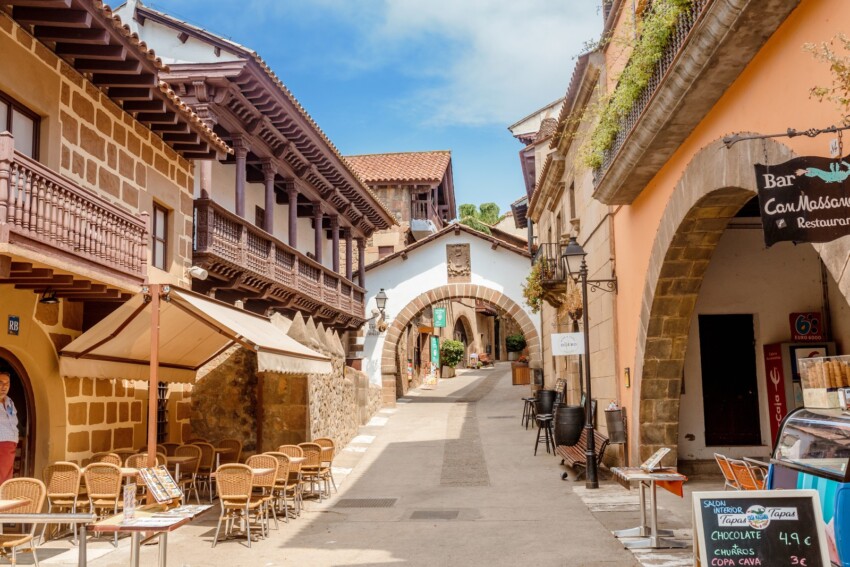 The Poble Espanyol is one of Barcelona’s most interesting tourist attractions. It is an open-air museum showcasing various aspects of Spain, from traditions to reconstructions of cities and monuments, from arts to crafts. You can admire a unique combination of architecture, contemporary art, shops and gastronomy; you can see a typical Andalusian quarter, a section of the Camino de Santiago and some interesting examples of Roman monastic architecture.