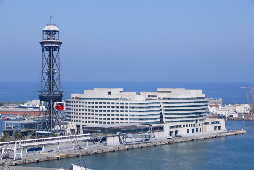 Next to the World Trade Center is a cable car, called the Teleferico del Puerto, which terminates at the Terraza Miramar on Montjuic Hill (note: do not confuse this with the actual Teleferica de Montjuic, which runs an entirely different route). You can board the iconic red cable car and enjoy splendid views from the top of the Jaume I Tower.